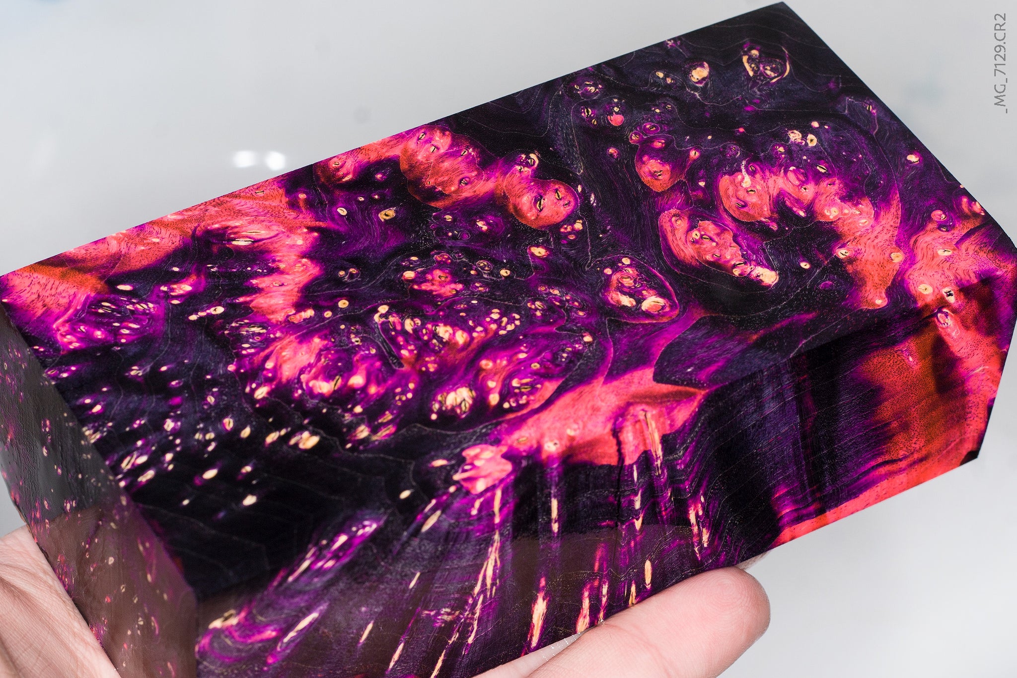 Stabilized triple dyed box elder burl blank