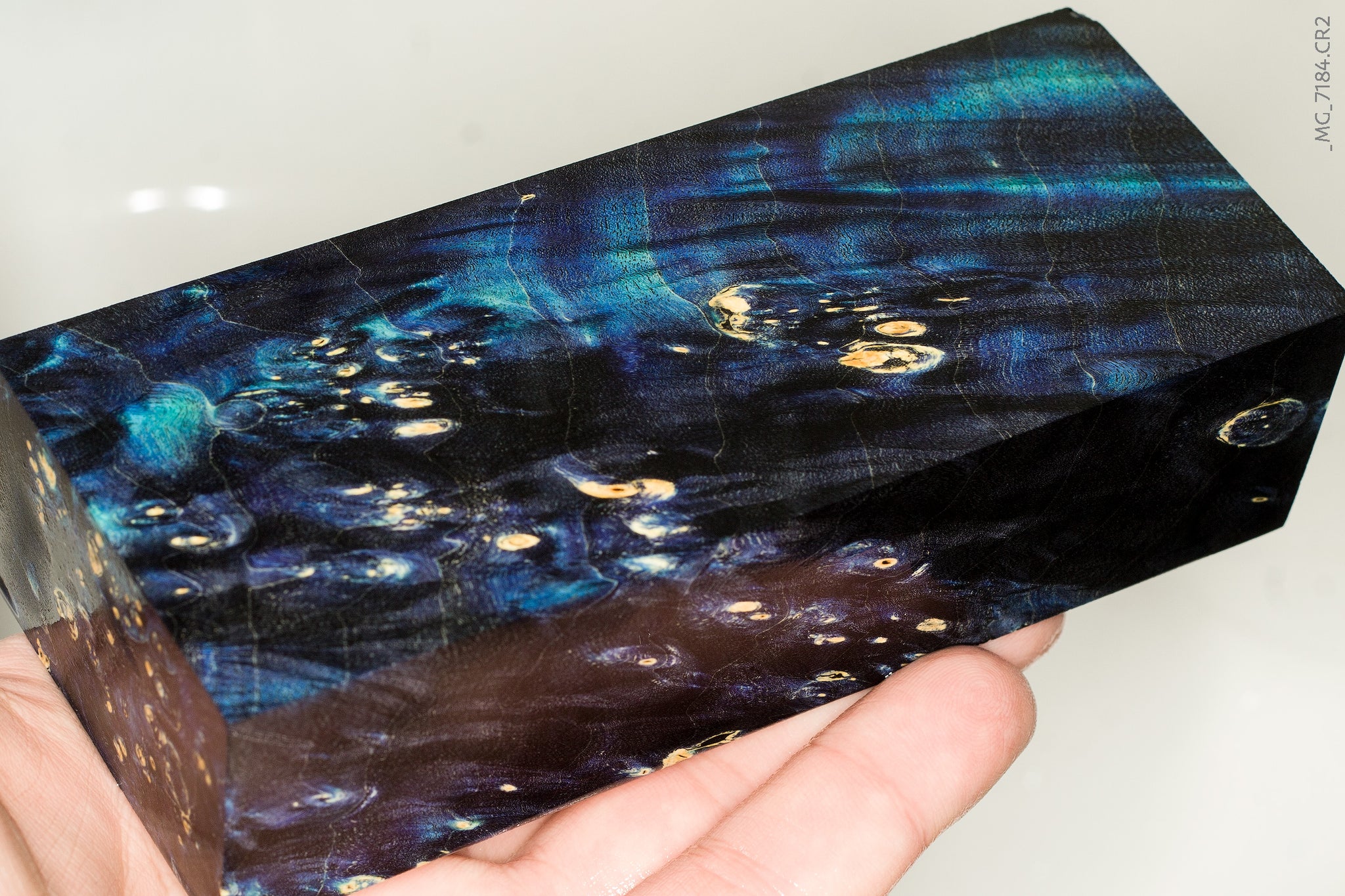 Stabilized triple dyed box elder burl blank