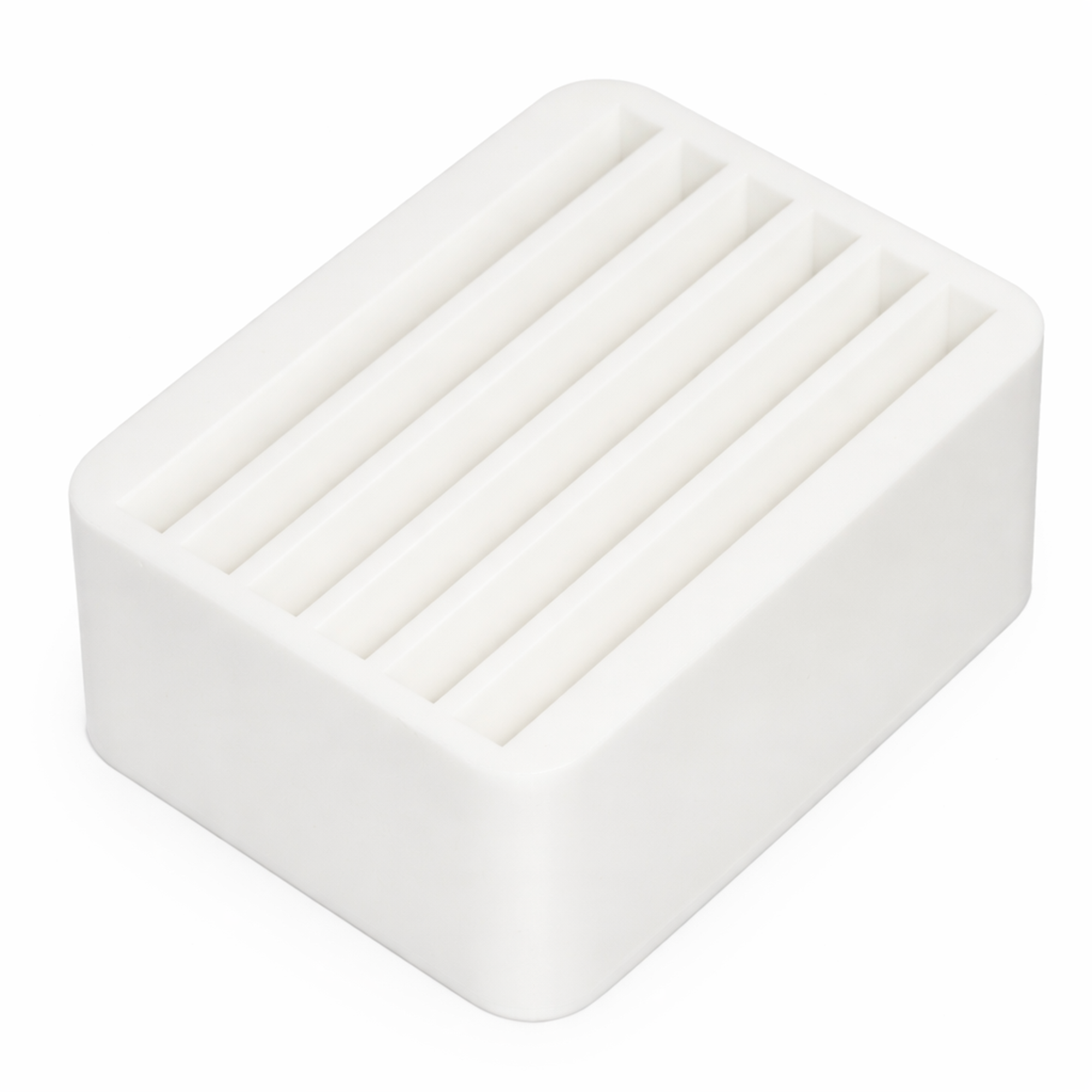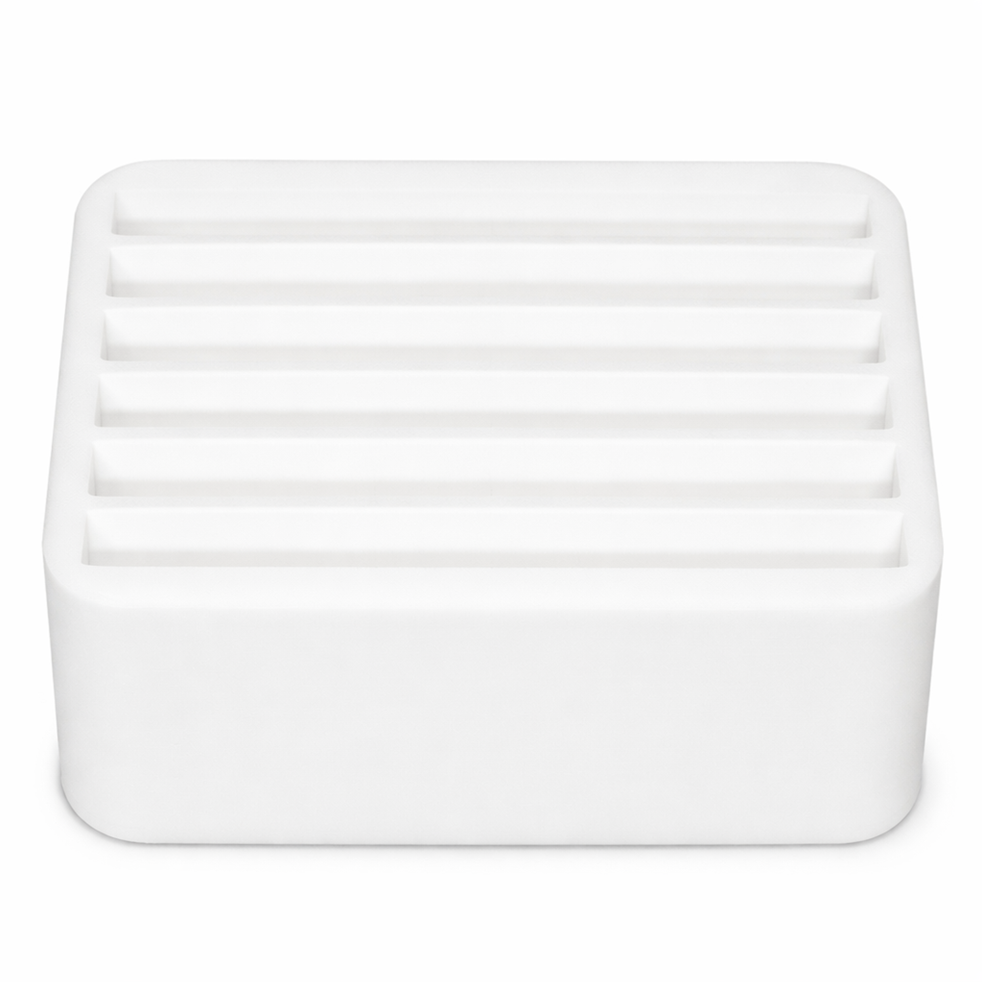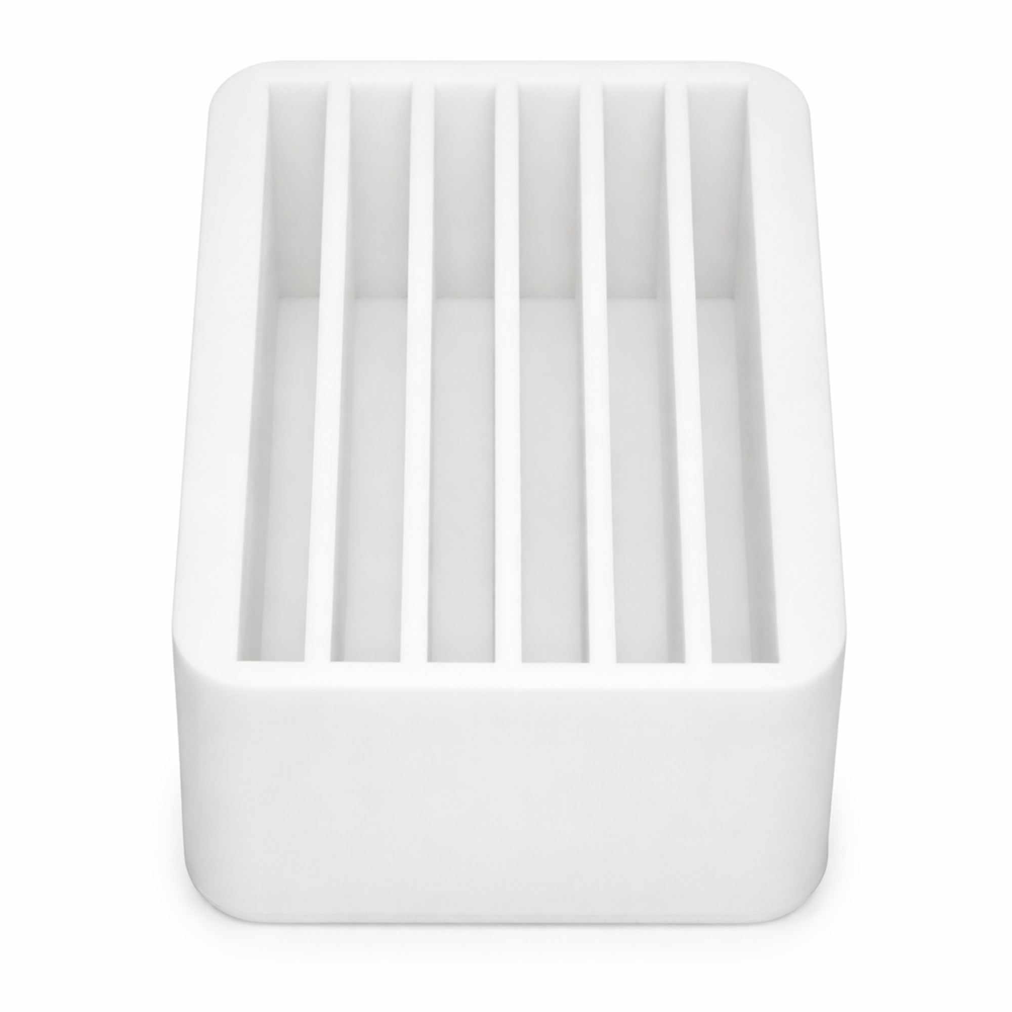 Premium platinum‑cure silicone mold featuring six evenly spaced rectangular cavities. This material ensures exceptional durability, long service life, and perfect compatibility with epoxy, polyester resin, acrylic, plaster, and other casting materials. The mold produces clean edges, stable geometry, and a satin/matte surface finish on your castings.