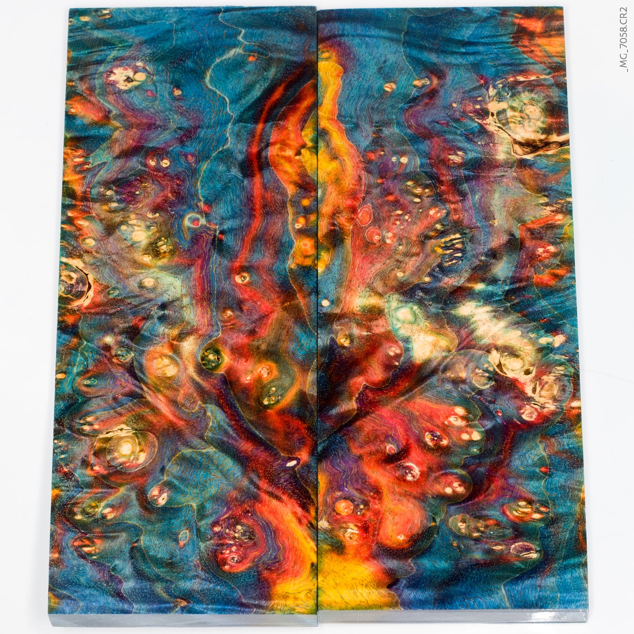 A pair of stabilized wood box elder burl panels