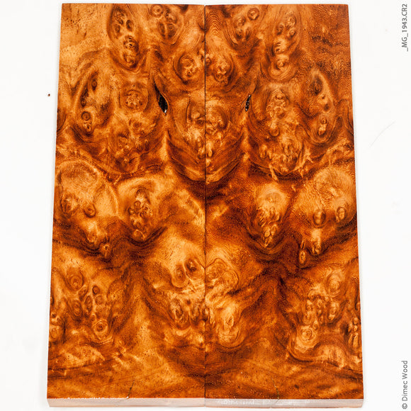 A pair of stabilized natural golden amboyna burl wood panels
